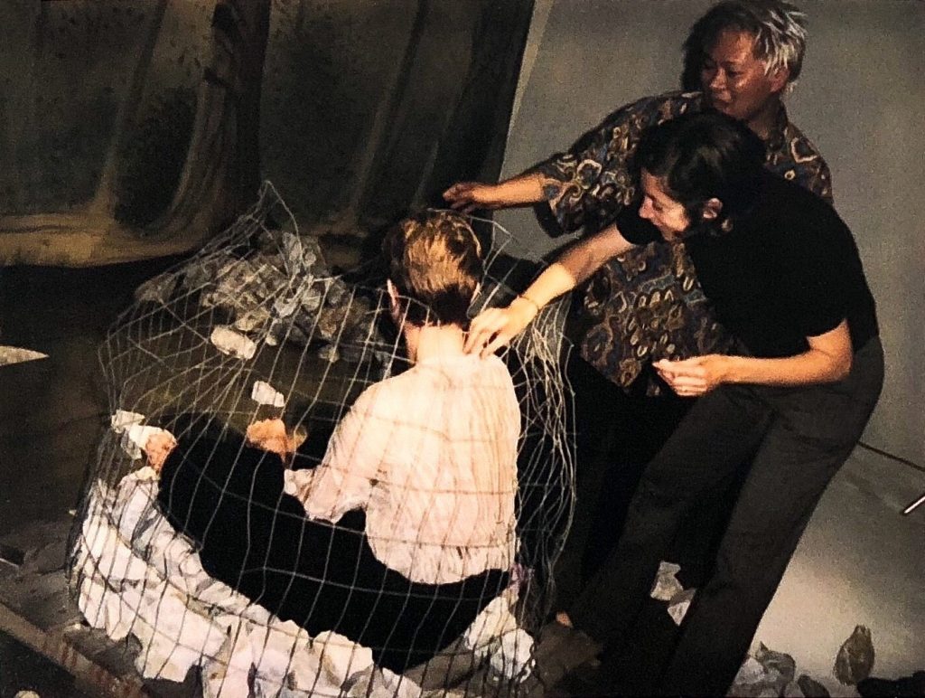 Raygun’s Mark Blackwell has very kindly let us publish previously-unseen shots from his ’90s Polaroid diary of Bowie being put into a cage for the shoot, as well as shots of DB with the huH and Raygun team below.