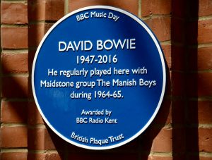 In Maidstone, Davy and the Boys were awarded by BBC RADIO Kent, a blue plaque which is erected in The Star Shopping Precinct and reads, BBC Music Day, David Bowie 1947-2016. He regularly played here with Maidstone Group The Manish Boys, during 1964- 65. Awarded by BBC Radio Kent British Plaque Trust.