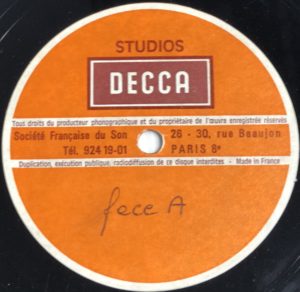 Lot 419 – DAVID BOWIE DECCA FRENCH HEROES ACETATE. A double sided acetate bearing French Decca Studios labels containing apparent master mixes of David Bowie – Heroes LP (1977). Tracklisting follows the standard album order. The disc grades visually at a strong VG+ to Ex.