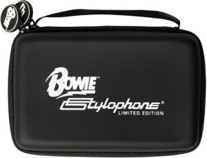 Introducing the limited-edition Bowie Stylophone, a stylish reimagining of the original pocket synthesizer. Featuring a sleek white casing and classic Bowie design, this quirky instrument celebrates the buzzy space-age sound at the core of David Bowie’s 1969 classic ‘Space Oddity’ in true retro style – the ultimate collectible for any Bowie fan.
