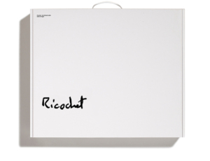 The limited edition book: One 17.51×11.69 inch (445×297 mm) cloth covered coffee table book, 320 pages, 150 gsm paper, thread sewn, case bound. Ricochet contains hundreds of exceptional personal and intimate photographs which are being shared for the first time, and every image in the book was personally approved by David Bowie. Many photographs feature captions by Denis with a personal memory. The book also contains facsimiles of handwritten lyrics by David from songs performed on the tour.