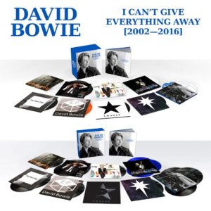 DAVID BOWIE 6. I CAN’T GIVE EVERYTHING AWAY (2002 – 2016) is a twelve-CD, eighteen-piece vinyl and standard digital download/streaming box set named after the closing track on ★ (BLACKSTAR), Bowie’s final studio album. The box sets include newly remastered versions (except ★ and No Plan), with input from David’s co-producer Tony Visconti.