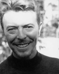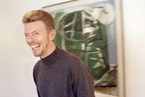 When we arrived at the house, somebody opened the door and we were let in. It was a terraced house in a side street and at the top of the stairs I could just see his head as he was sitting reading. I can still picture that moment. I was frozen with fear and anticipation. Bowie came down, we were introduced and he made us a cuppa. It was the house of his art advisor and he had a few pieces from his collection there for us to photograph him with.